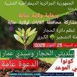 À l’occasion de la célébration de la Journée nationale de l’arbre, prévue aujourd’hui 25 octobre 2025 et coïncidant avec la grande campagne nationale de plantation d’un million d’arbres sous le slogan « Verte, avec la volonté d’Allah », le secrétaire général, chargé de la gestion des affaires de la wilaya d’Annaba invite les comités de ville à participer activement à cette initiative nationale. Cette campagne vise à semer l’espoir et la vie pour une Algérie verte et durable.