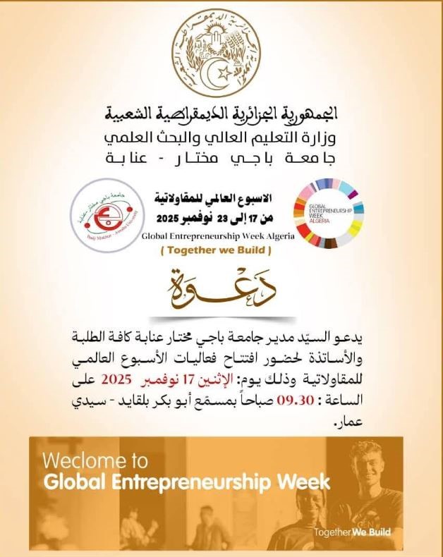 L’Université Badji Mokhtar d’Annaba se prépare à célébrer, du 17 au 23 novembre, la Semaine mondiale de l’entrepreneuriat, un rendez-vous international incontournable dédié à la promotion de l’innovation et au développement de l’esprit d’initiative. À travers une programmation dense et ambitieuse, l’université entend renforcer la culture entrepreneuriale au sein de sa communauté et soutenir l’émergence de projets porteurs.
