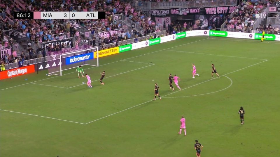 L’Argentin profite d’un appel millimétré pour tromper la défense d’Atlanta et inscrire son deuxième but du match.