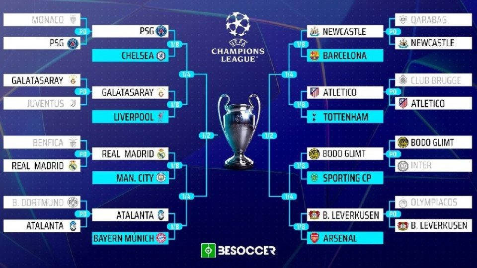 Si la logique est respectée, les quarts de finale pourraient nous offrir un véritable choc des titans : le vainqueur du duel Real Madrid / Manchester City se retrouverait face au Bayern Munich. De son côté, Liverpool n’aura pas la tâche facile ; en cas de succès contre Galatasaray, les Reds devront ferrailler avec un rival de Premier League, Chelsea, ou le tenant du titre, le PSG, pour une place dans le dernier carré.