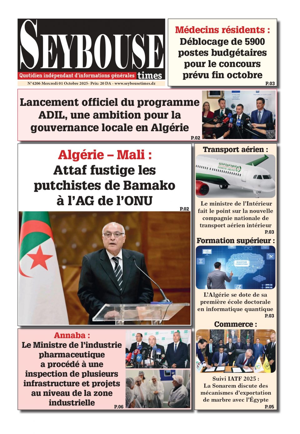 Journal du 01 Octobre 2025 Edition N°4206