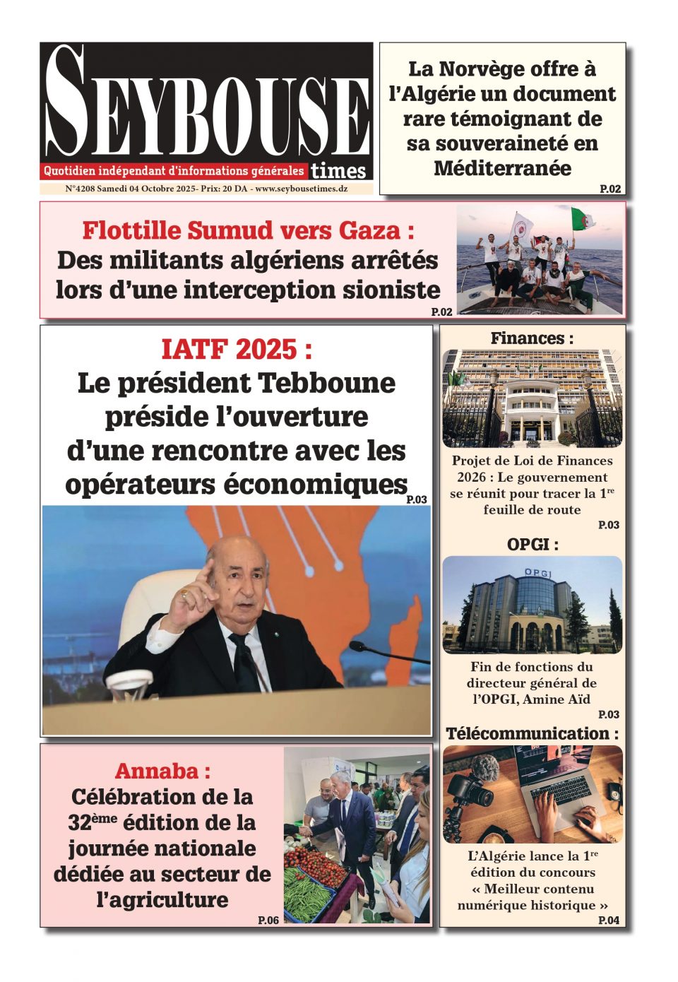 Journal du 04 Octobre 2025 Edition N°4208