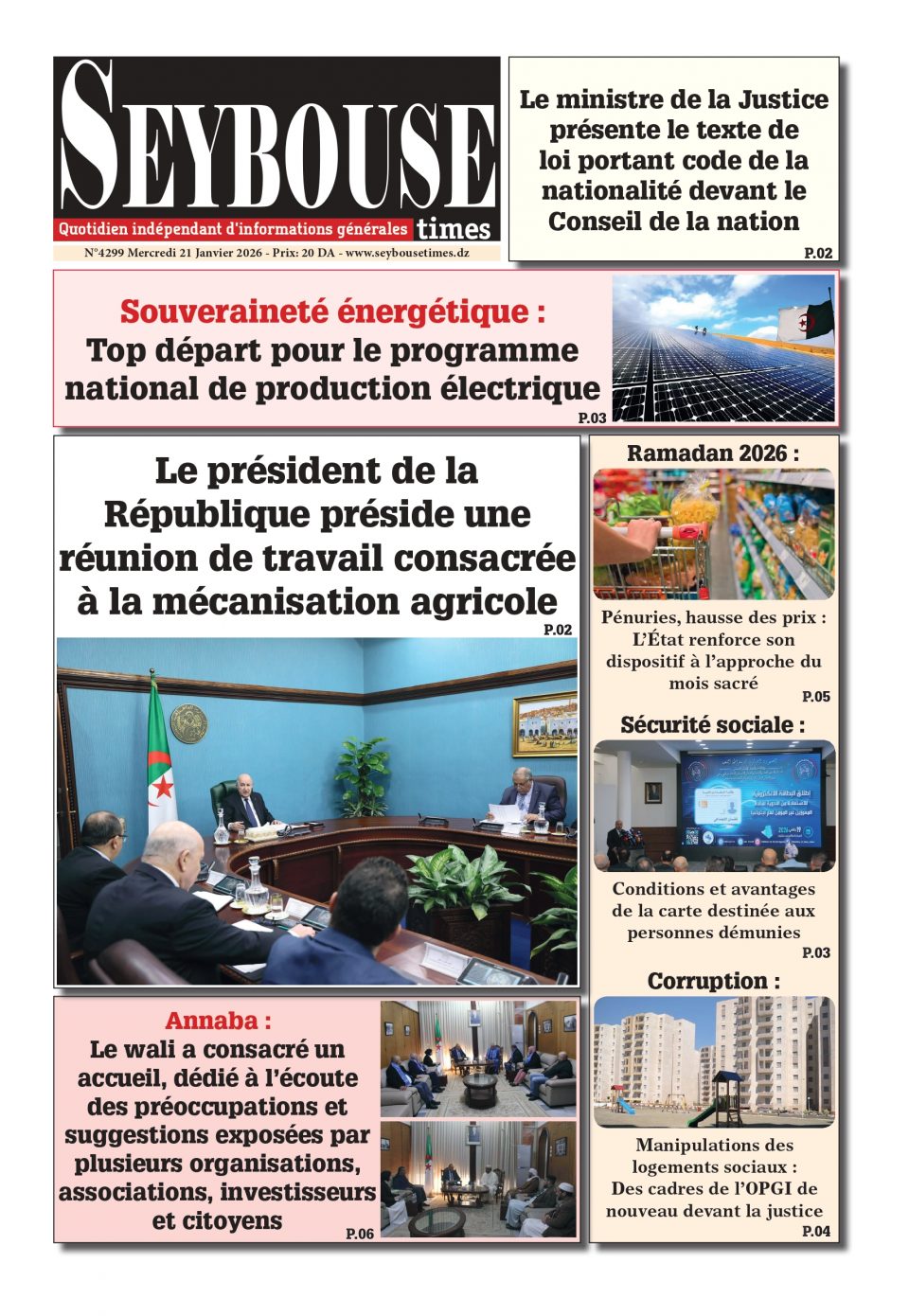 Journal du 21 Janvier 2026 Edition N°4299