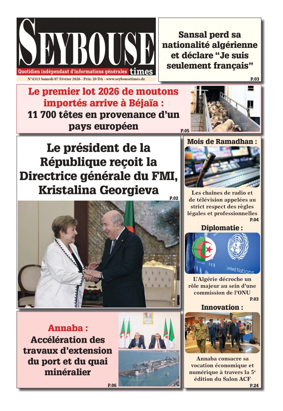 Journal du 07 Février 2026 Edition N°4313