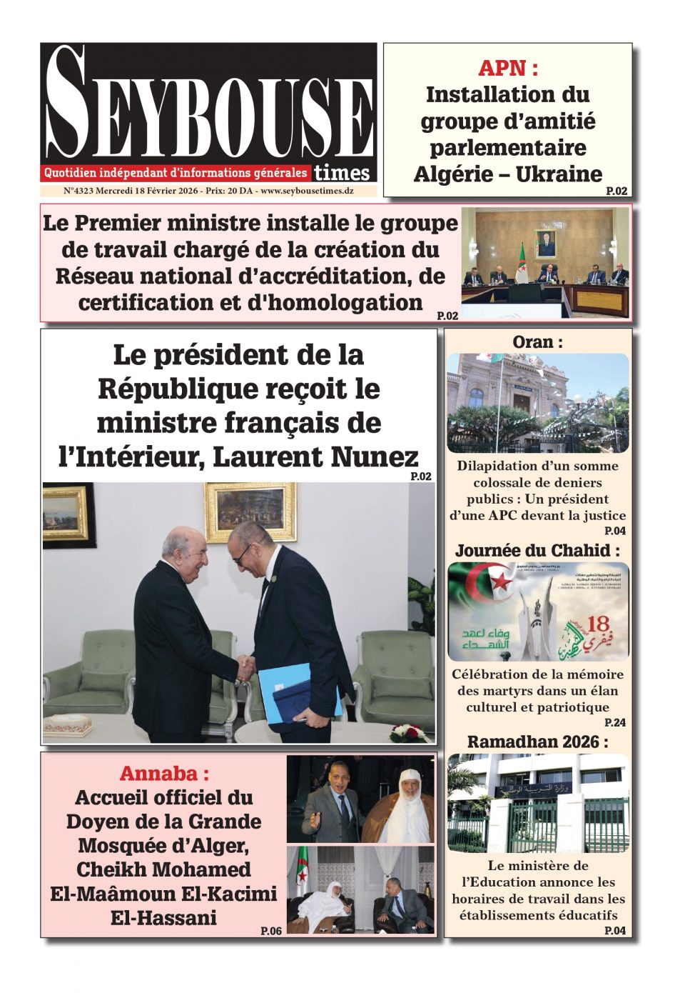 Journal du 18 Février 2026 Edition N°4323