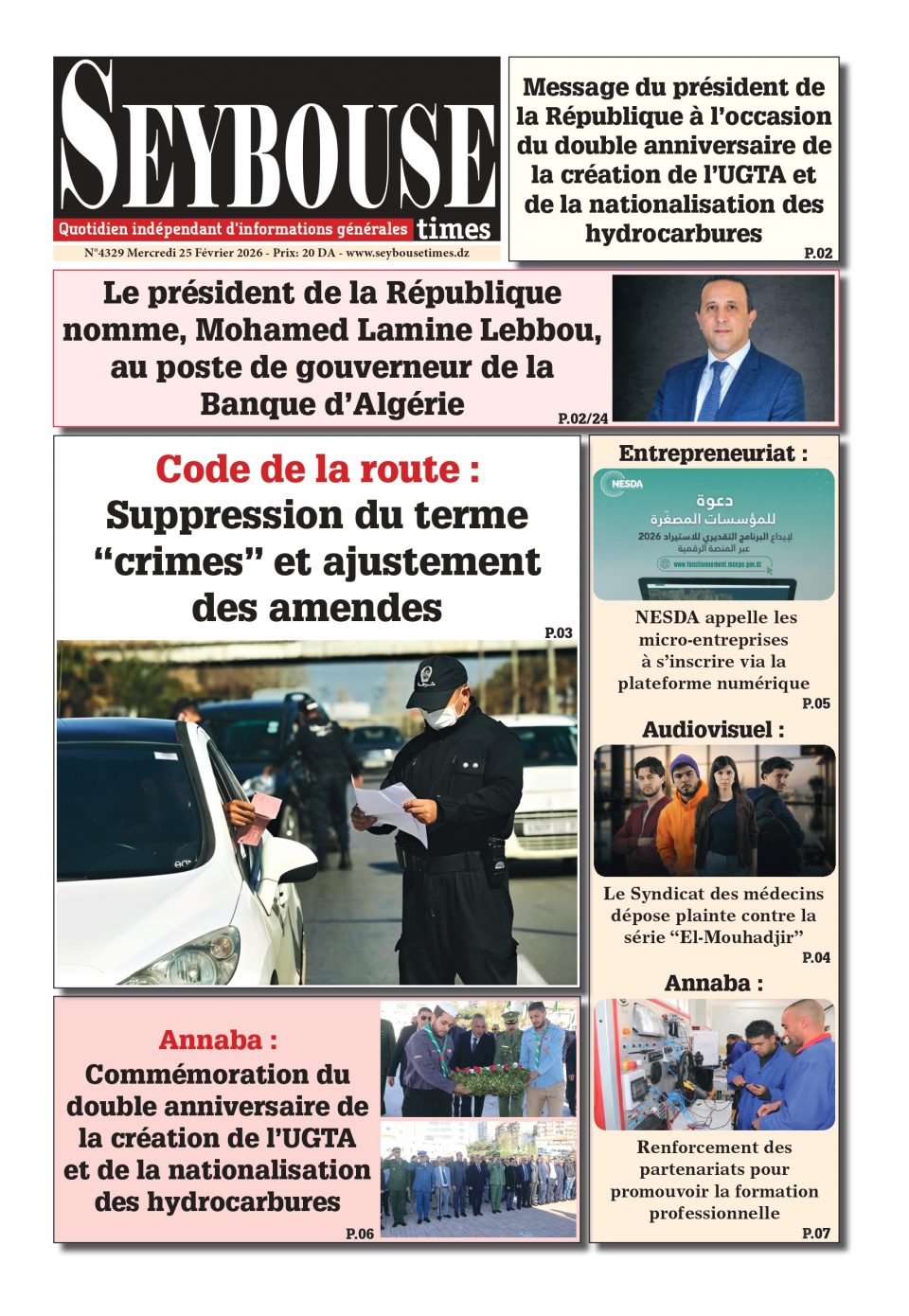 Journal du 25 Février 2026 Edition N°4329