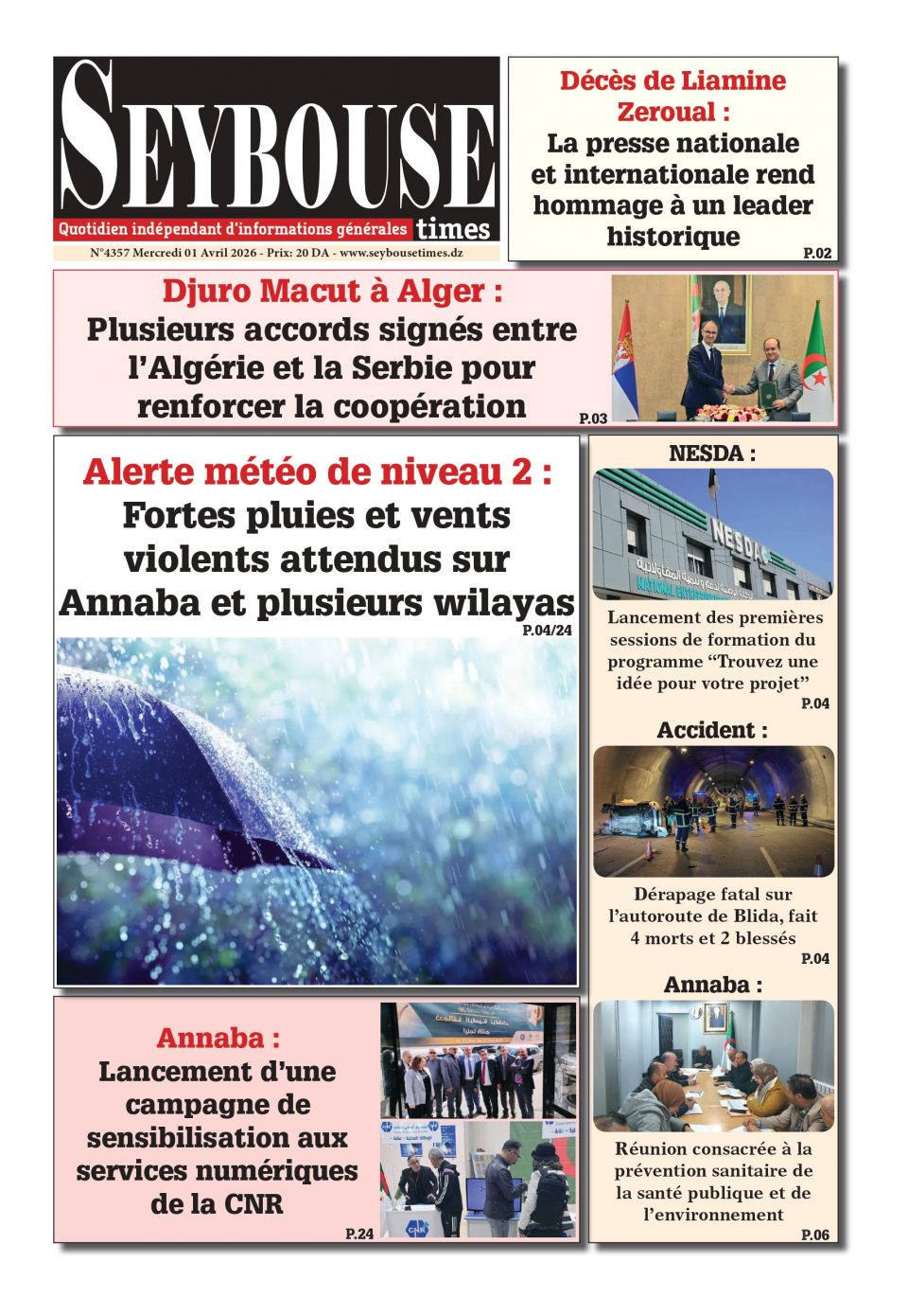 Journal du 01 Avril 2026 Edition N°4357