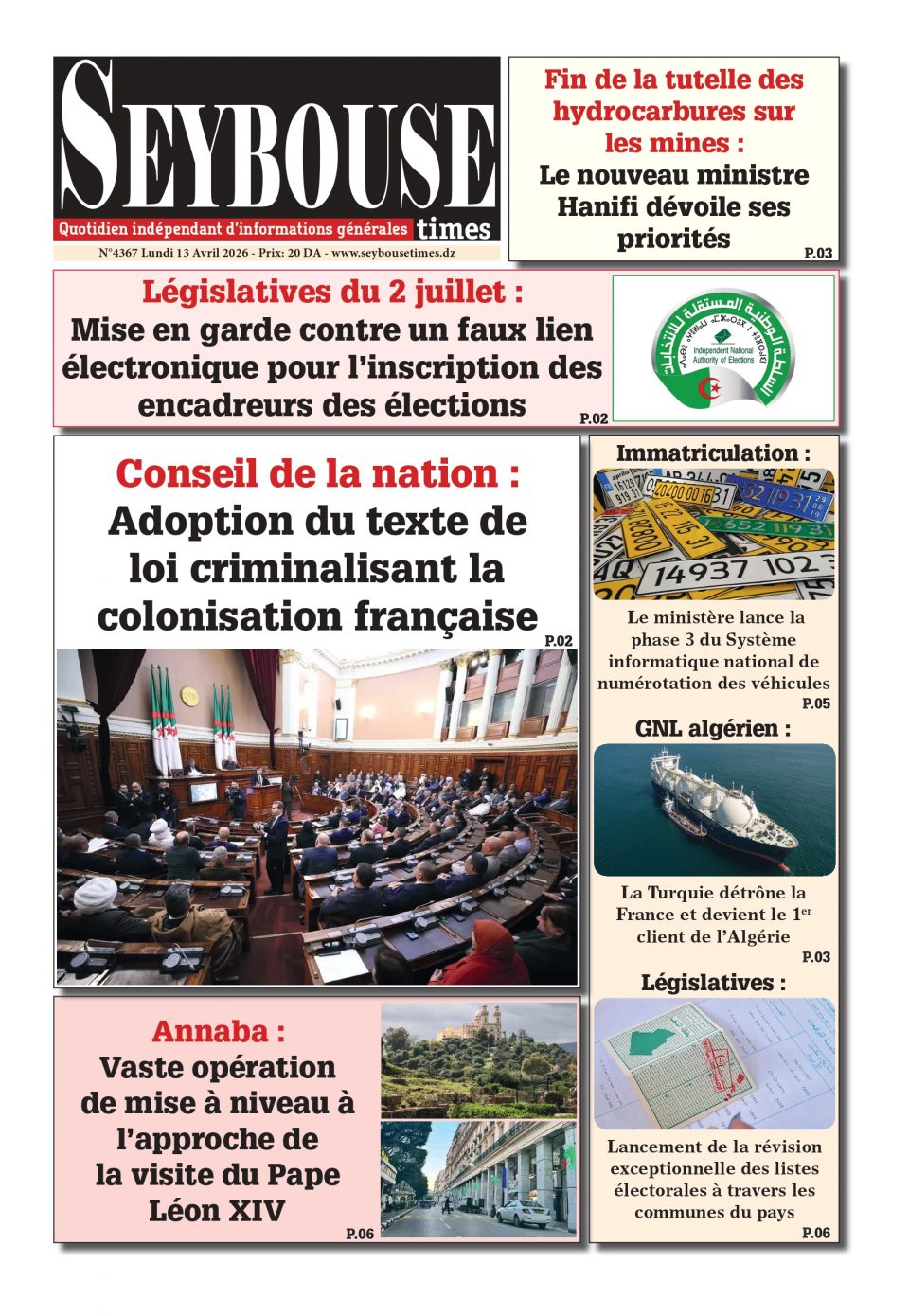 Journal du 13 Avril 2026 Edition N°4367